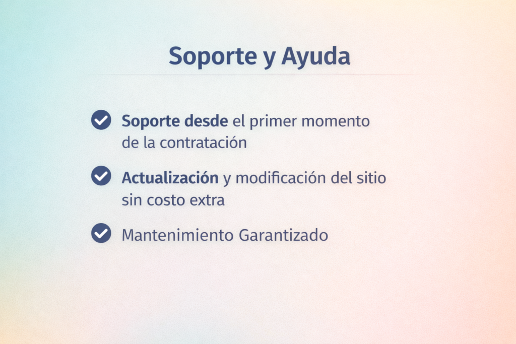 Una vez contratados la ayuda y soporte están garantizados. Te acompañamos en todo el proceso.